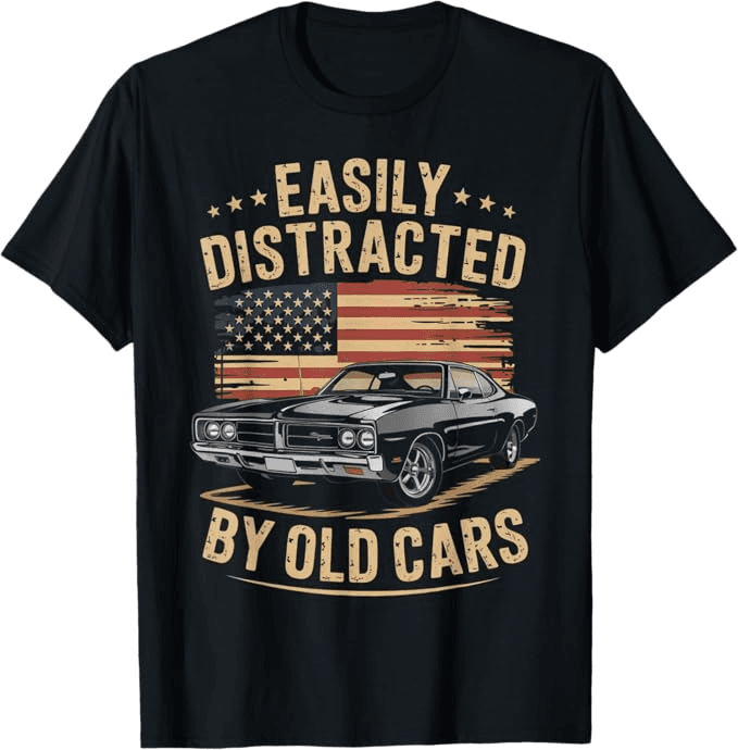 Easily Distracted by Old Cars Funny T-Shirt is the perfect tee for vintage car lovers, classic car enthusiasts, and gearheads with a sense of humor. Featuring a playful “Easily Distracted by Old Cars” design, this graphic t-shirt celebrates a passion for classic cars, car shows, and automotive nostalgia. Ideal for men and women who live for cruising, car meets, or garage projects, it makes a great gift for birthdays, Father’s Day, holidays, or any auto-loving friend. Comfortable, casual, and stylish, this funny classic car t-shirt is perfect for everyday wear or showing off your automotive obsession.